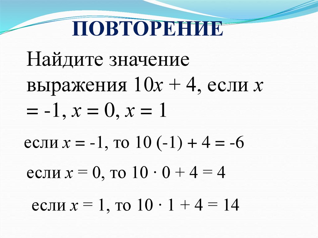 если х = 1, то 10 ∙ 1 + 4 = 14