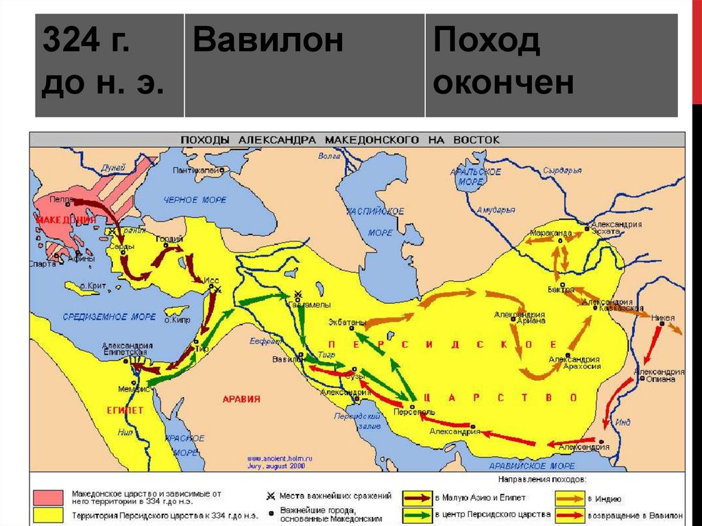 5. Ознакомиться с п.2 на стр. 201-202. Выделить этапы военных походов и действия Александра Македонского