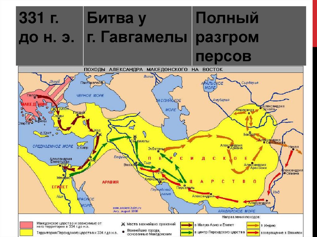 11. В группах, с помощью карты, прокомментируйте сражение при Гавгамелах и определите его результат для греков, македонян, персов и