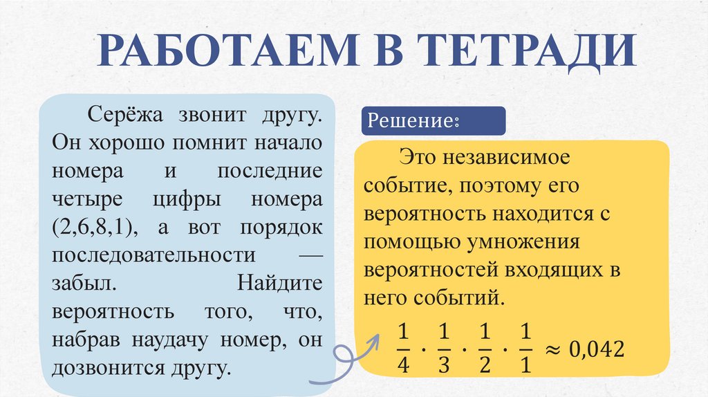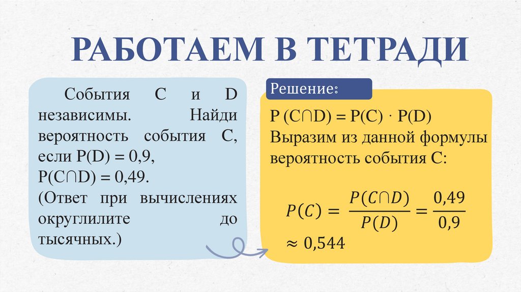 РАБОТАЕМ В ТЕТРАДИСобытия C и D