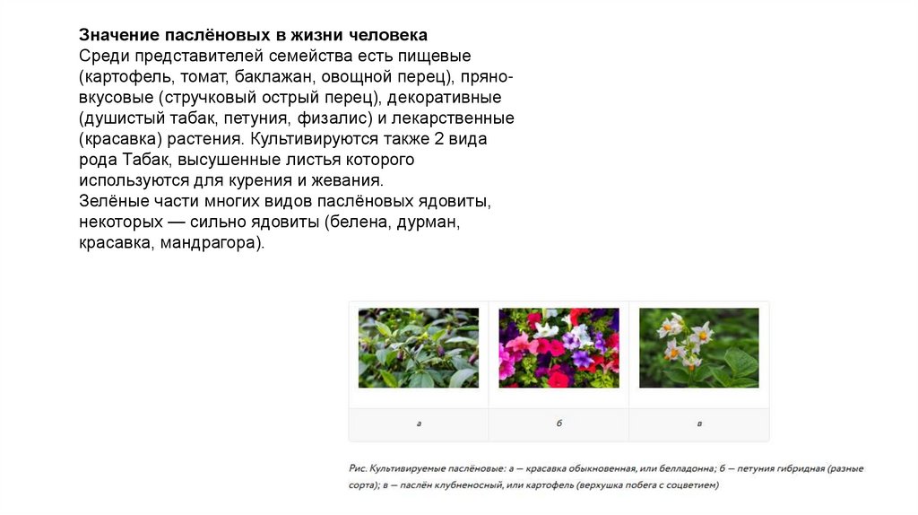 Значение паслёновых в жизни человекаСреди представителей семейства есть пищевые