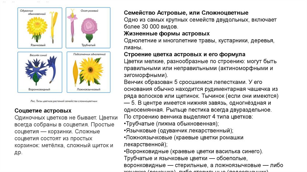 Соцветие астровыхОдиночных цветков не бывает. Цветки