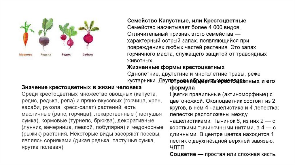 редис, редька, репа) и пряно-вкусовых (горчица, хрен, цветоножкой. Околоцветник состоит из 2