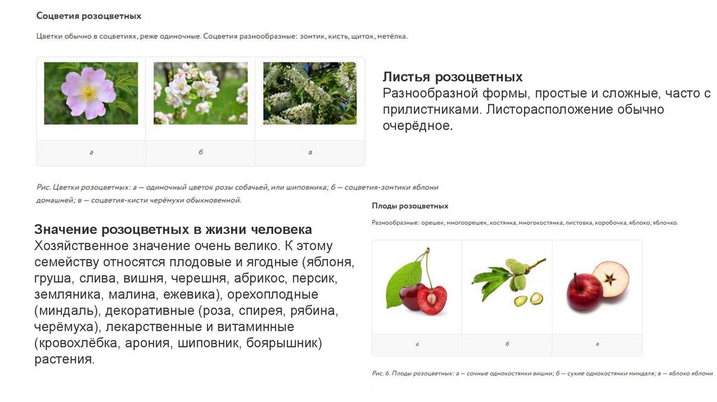 Листья розоцветныхРазнообразной формы, простые и сложные, часто с