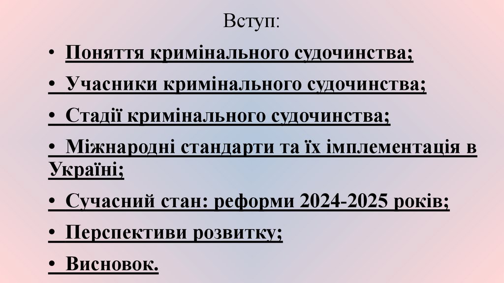 Презентація на тему:Кримінальне судочинство в Україні: сучасний стан та