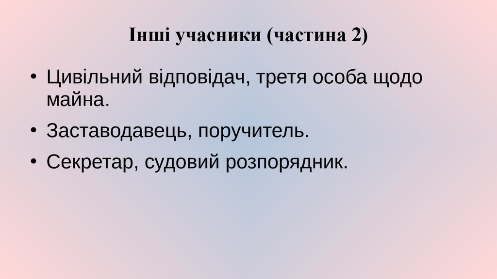 Інші учасники (частина 2)Цивільний відповідач, третя особа щодо