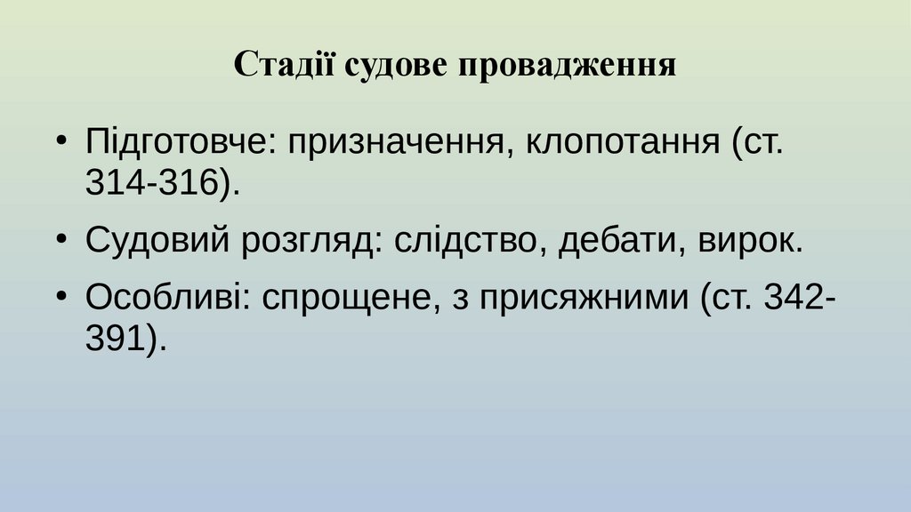Стадії судове провадженняПідготовче: призначення, клопотання (ст.