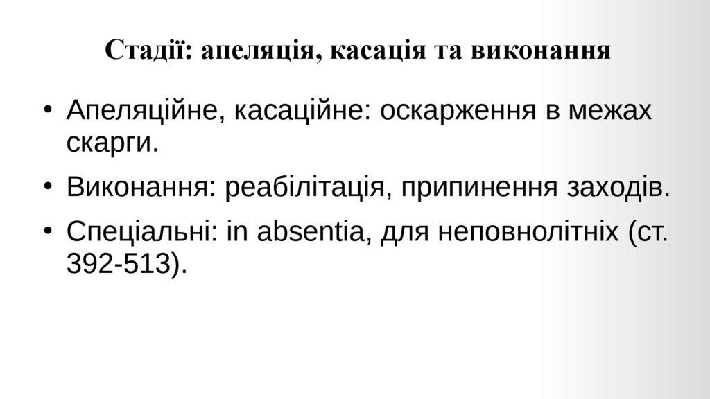 Стадії: апеляція, касація та виконанняАпеляційне, касаційне: оскарження в межах