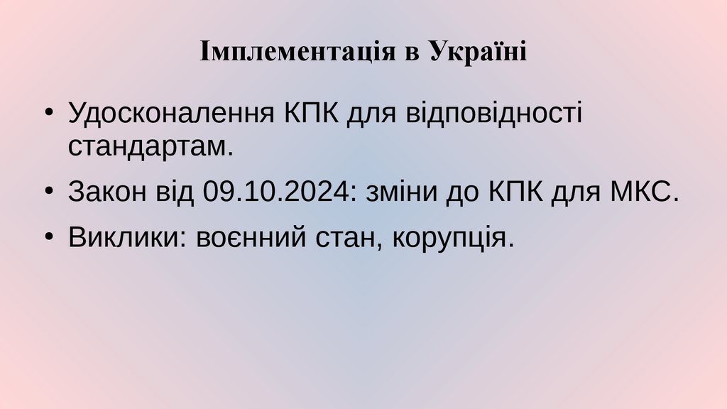 Імплементація в УкраїніУдосконалення КПК для відповідності