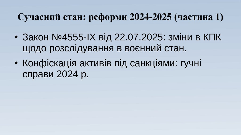 Сучасний стан: реформи 2024-2025 (частина 1)Закон №4555-IX від 22.07.2025: зміни в КПК