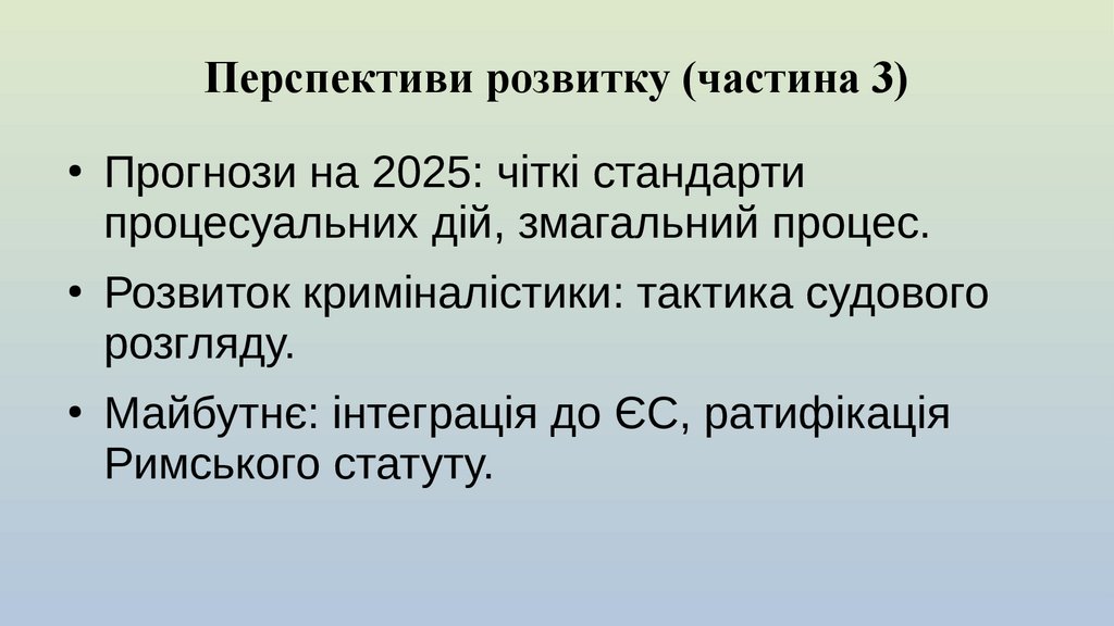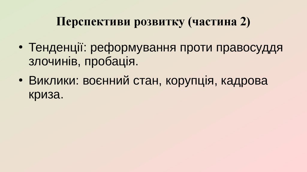 Перспективи розвитку (частина 2)Тенденції: реформування проти правосуддя