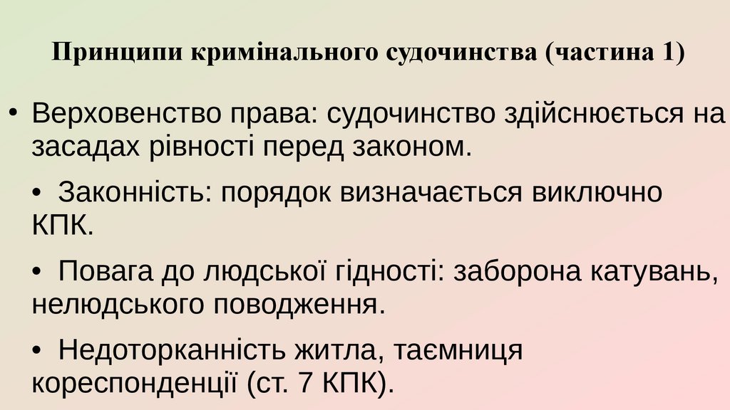 Принципи кримінального судочинства (частина 1)Верховенство права: судочинство здійснюється на