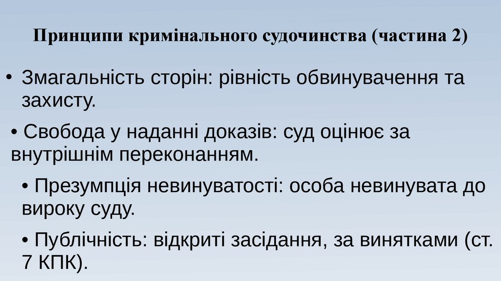 Принципи кримінального судочинства (частина 2)Змагальність сторін: рівність обвинувачення та