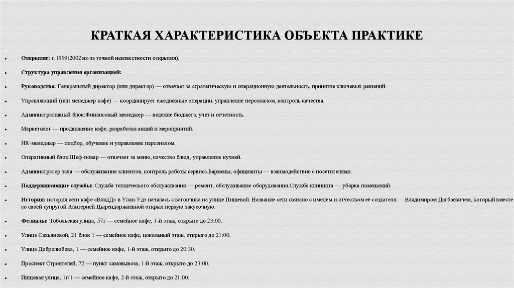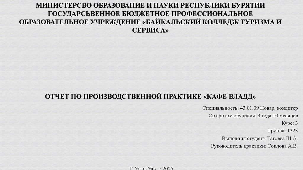 ОТЧЕТ ПО ПРОИЗВОДСТВЕННОЙ ПРАКТИКЕ «КАФЕ ВЛАДД»