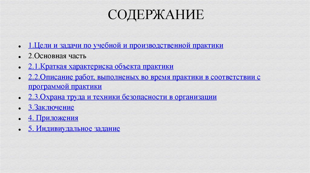 СОДЕРЖАНИЕ1.Цели и задачи по учебной и производственной практики