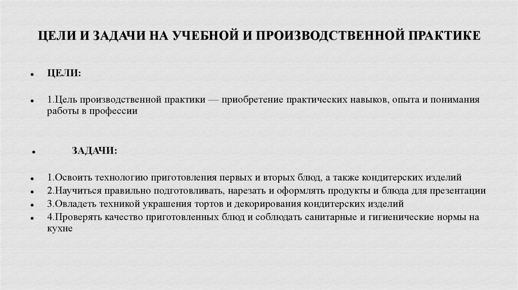 ЦЕЛИ И ЗАДАЧИ НА УЧЕБНОЙ И ПРОИЗВОДСТВЕННОЙ ПРАКТИКЕЦЕЛИ: