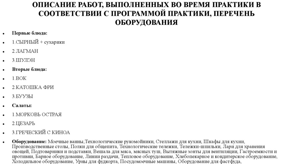 блюд и соблюдения санитарных норм. В процессе практической деятельности я ознакомилась с технологией