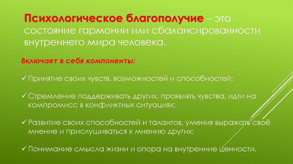 Психологическое благополучие – этосостояние гармонии или сбалансированности