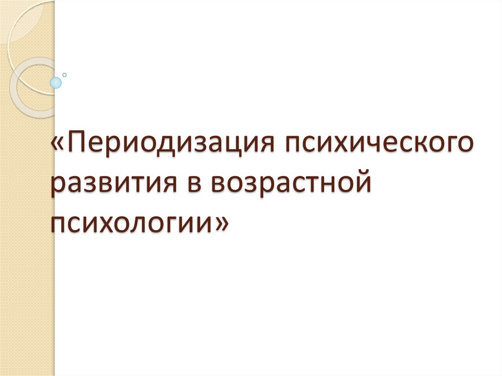 1. «Периодизация психического развития в возрастной психологии»