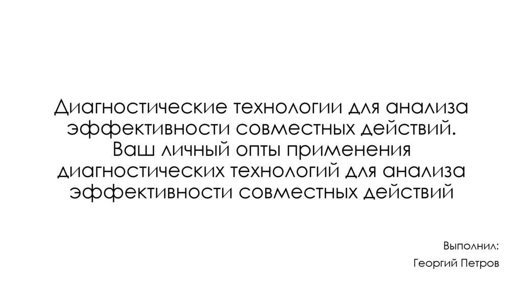 1. Диагностические технологии для анализа эффективности совместных действий. Ваш личный опты применения диагностических технологий