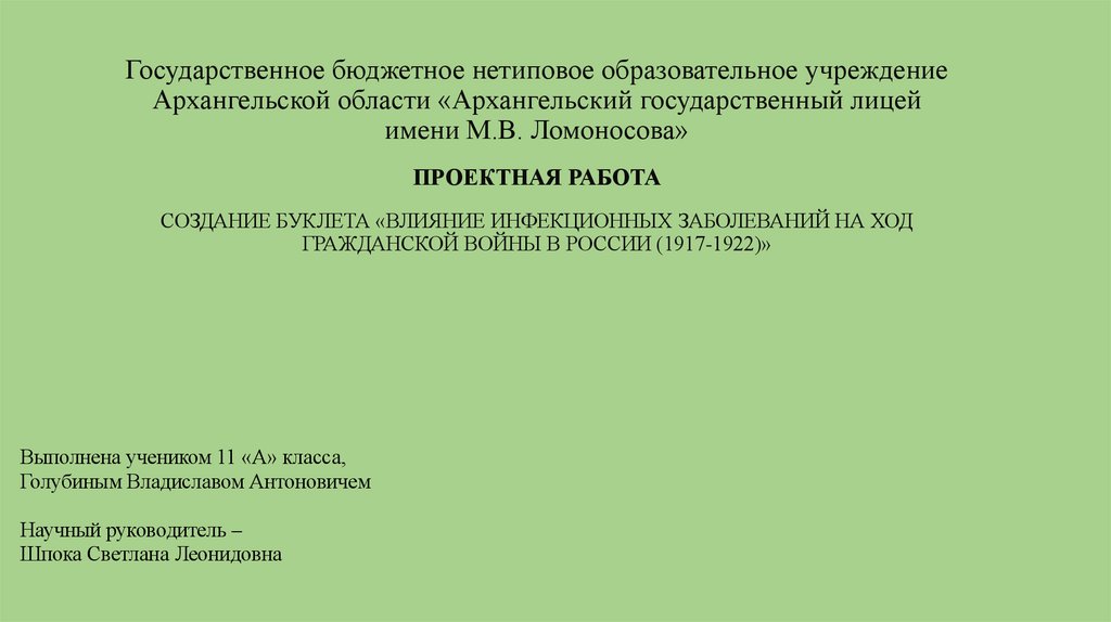 Государственное бюджетное нетиповое образовательное учреждениеАрхангельской области «Архангельский государственный лицей