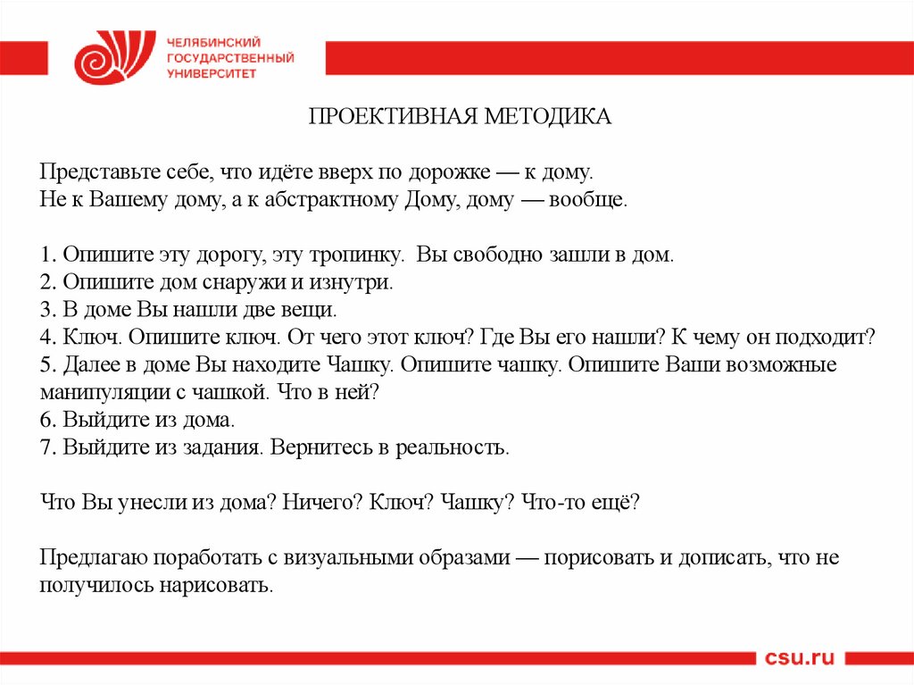 ПРОЕКТИВНАЯ МЕТОДИКАПредставьте себе, что идёте вверх по дорожке — к дому.
