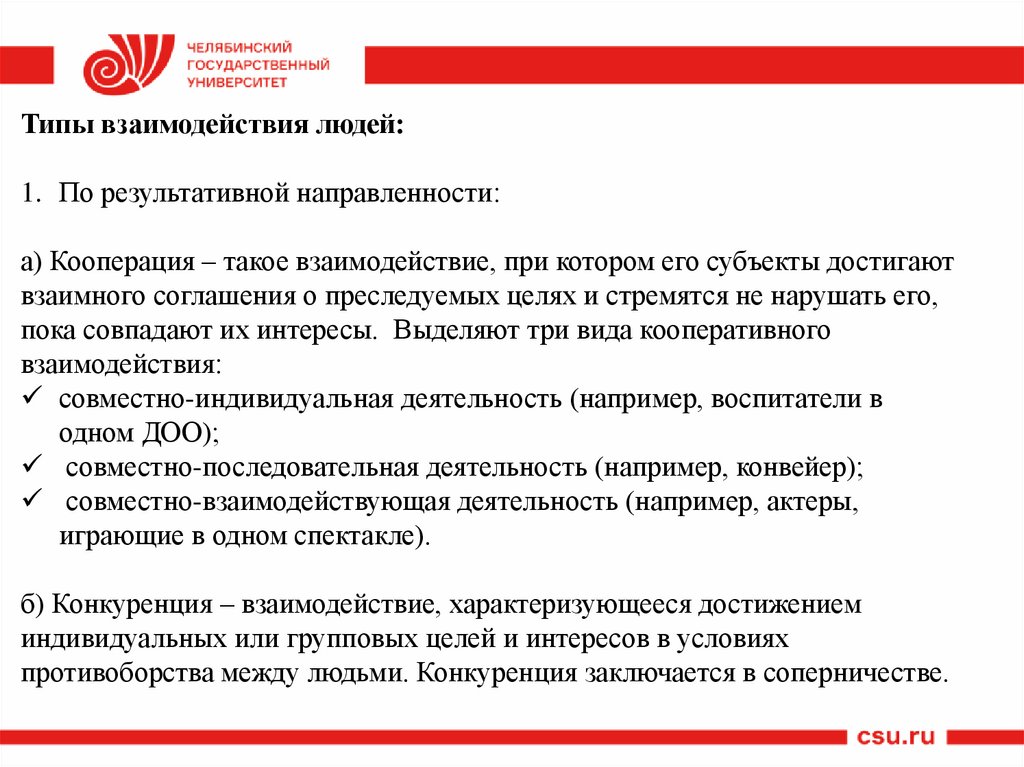 пока совпадают их интересы. Выделяют три вида кооперативного