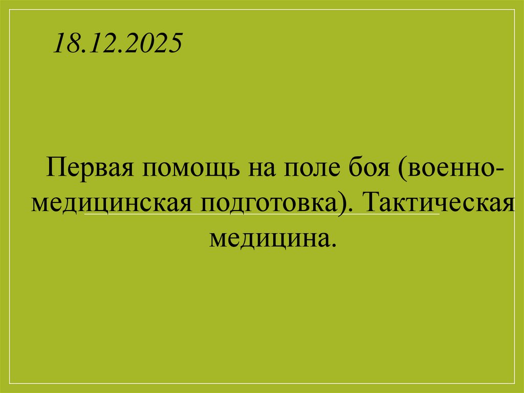 18.12.2025Первая помощь на поле боя (военномедицинская подготовка). Тактическая