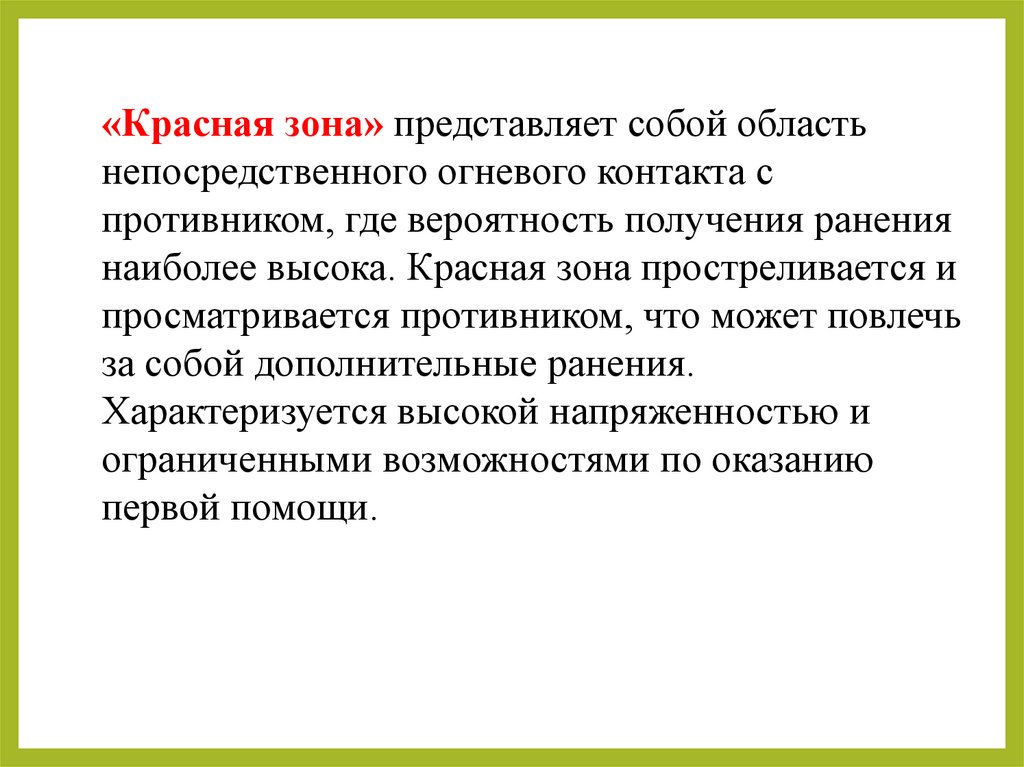 «Красная зона» представляет собой областьнепосредственного огневого контакта с