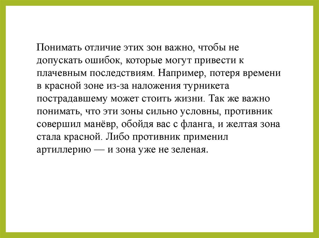 особенностей «красной», «желтой» и «зеленой» зон;