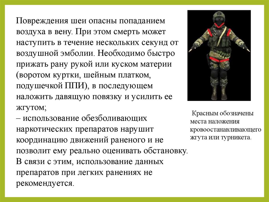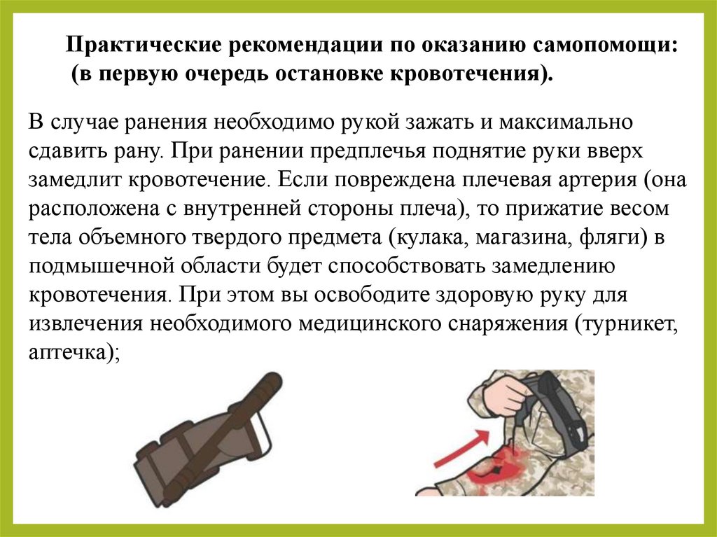 первой помощи в этих зонах при ранениях.