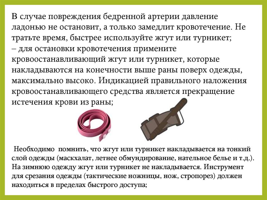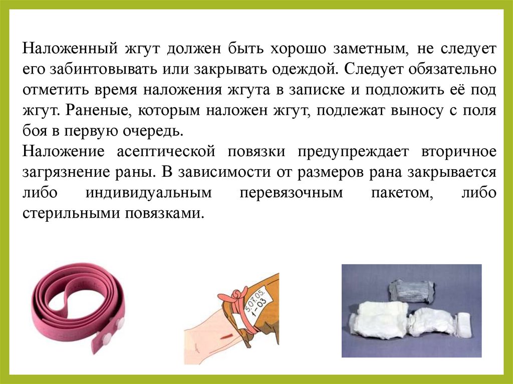 ‒ не закрывайте жгут или турникет бинтами;