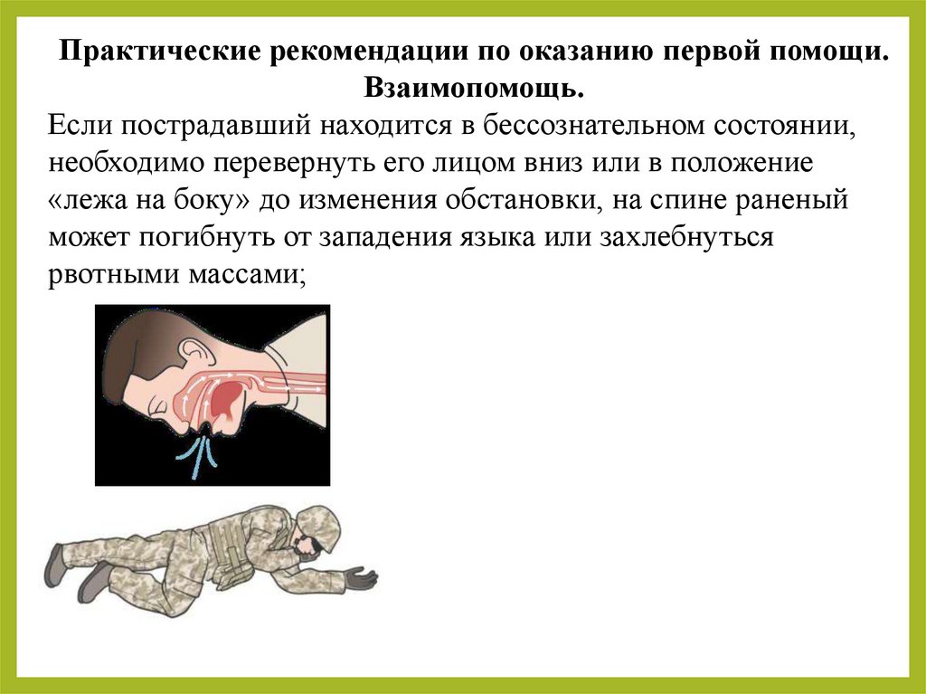 «лежа на боку» до изменения обстановки, на спине раненый