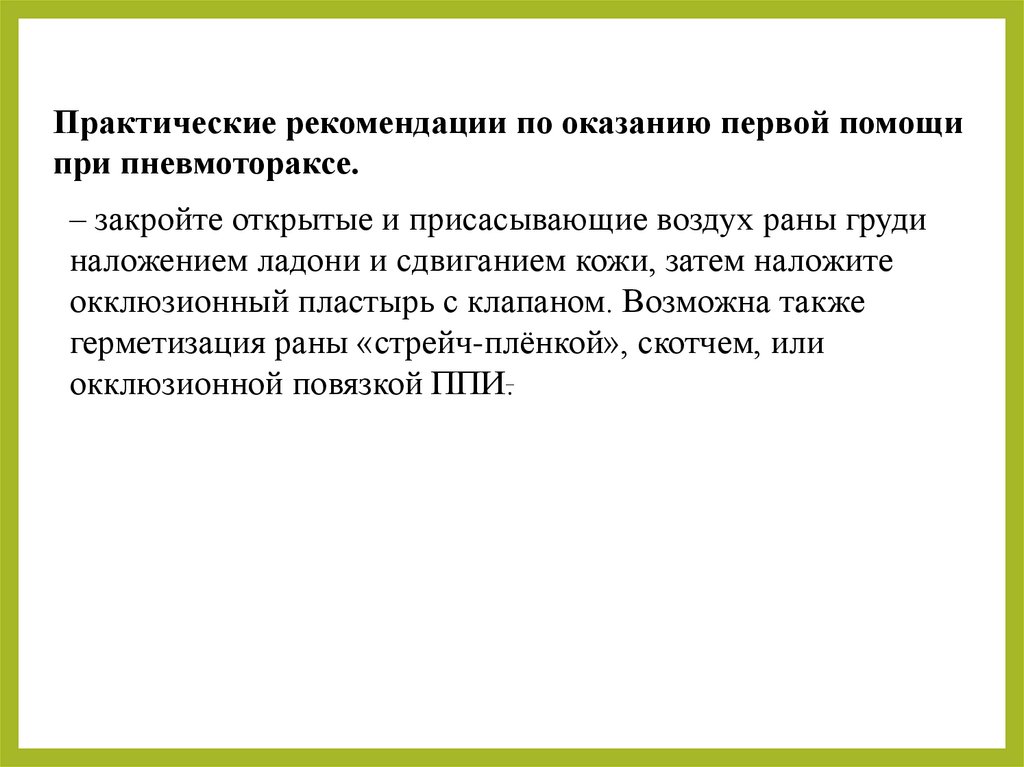 Практические рекомендации по оказанию первой помощипри пневмотораксе.