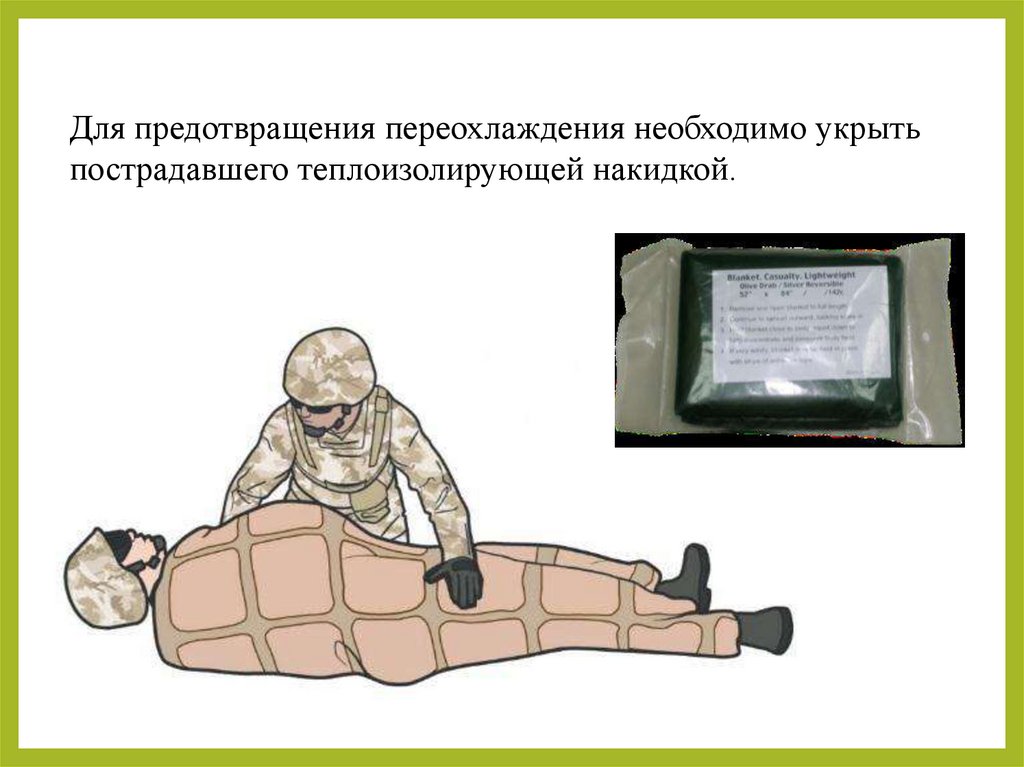 Для предотвращения переохлаждения необходимо укрытьпострадавшего теплоизолирующей накидкой.