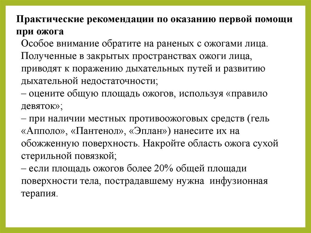 Практические рекомендации по оказанию первой помощипри ожога
