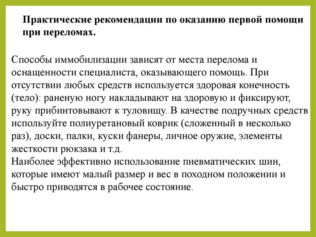 Практические рекомендации по оказанию первой помощипри переломах.