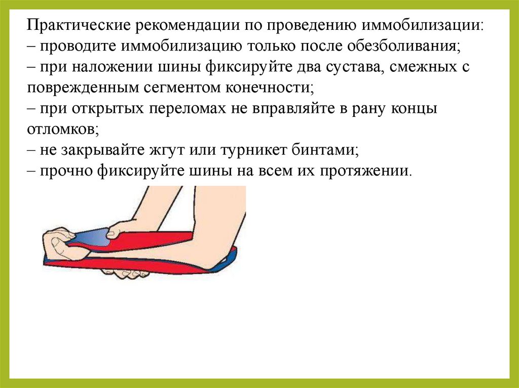 Практические рекомендации по проведению иммобилизации:‒ проводите иммобилизацию только после обезболивания;