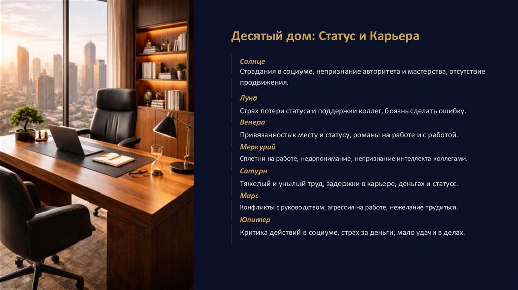Десятый дом: Статус и КарьераСолнце