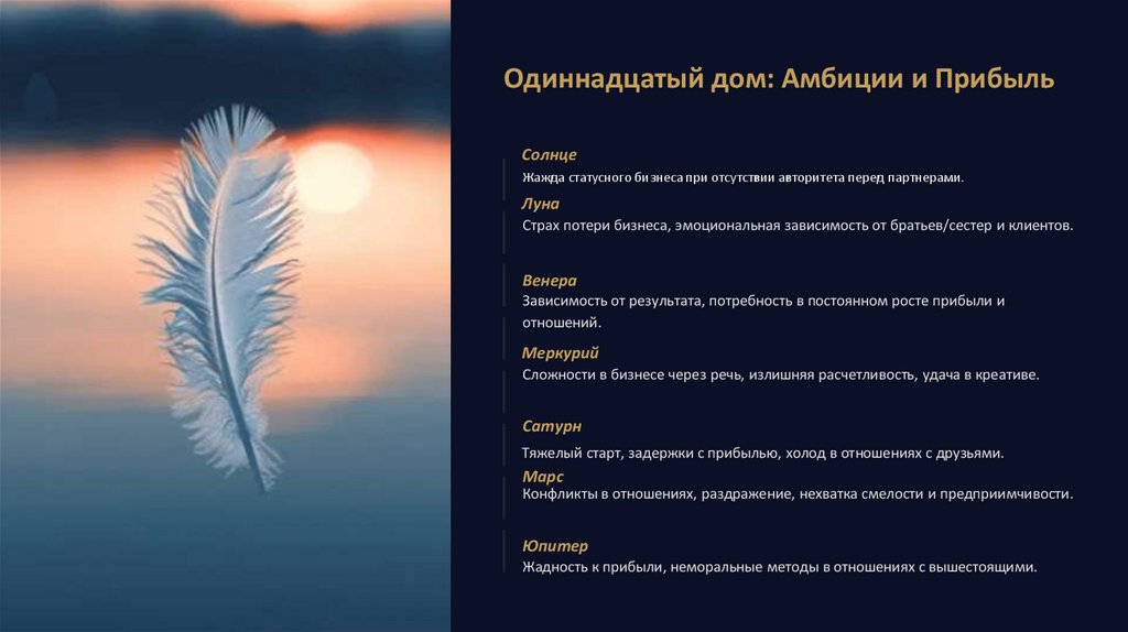 Одиннадцатый дом: Амбиции и ПрибыльСолнце