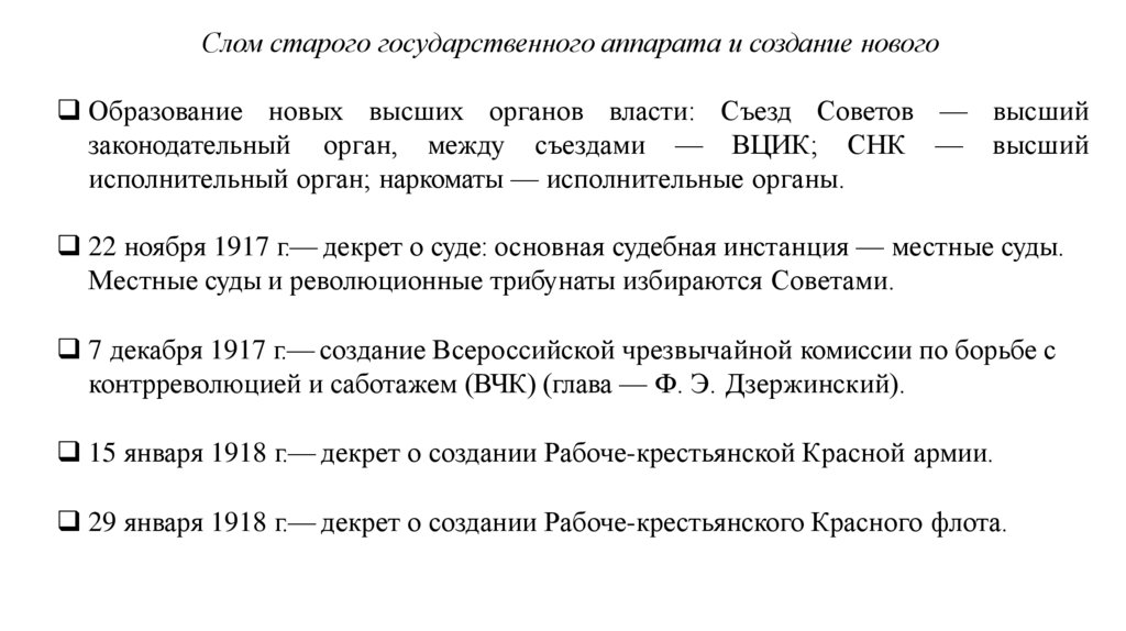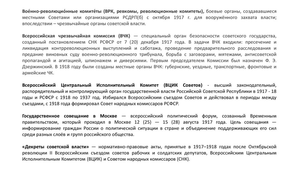 «Декреты советской власти» — нормативно-правовые акты, принятые в 1917–1918 годах после Октябрьской