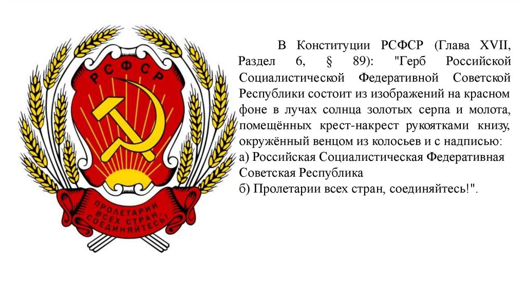 В Конституции РСФСР (1918 г.,раздел 6, гл. XVII, § 90) приведено