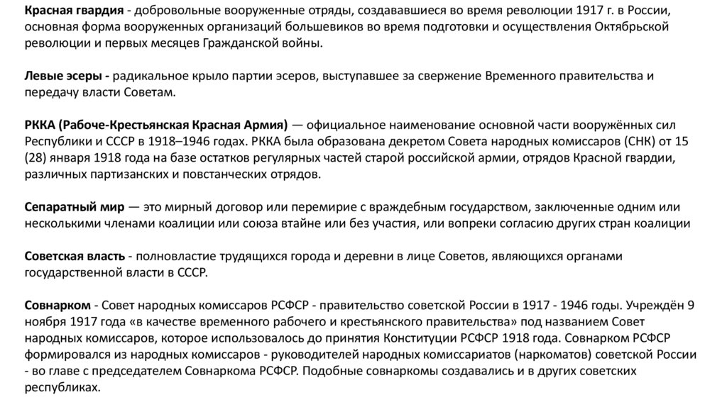 Красная гвардия - добровольные вооруженные отряды, создававшиеся во время революции 1917 г. в России,основная форма вооруженных организаций большевиков во время подготовки и осуществления Октябрьской