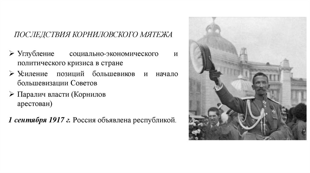 ПОСЛЕДСТВИЯ КОРНИЛОВСКОГО МЯТЕЖАУглубление