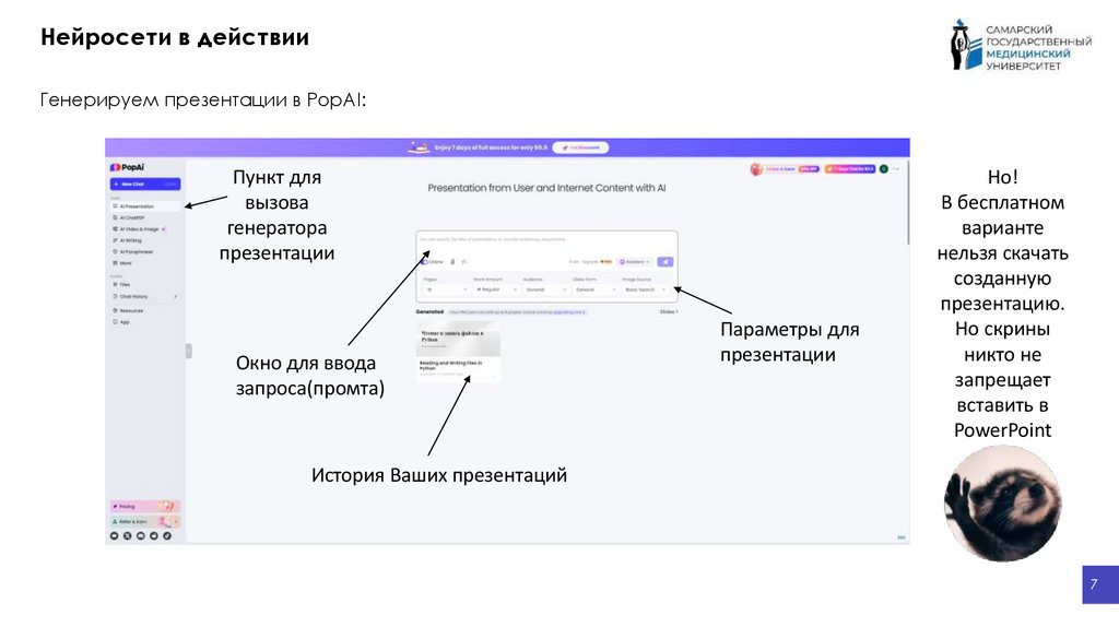 5. Сгенерируйте презентацию на тему «Медицина будущего» с помощью нейросетей, одна пишет вам