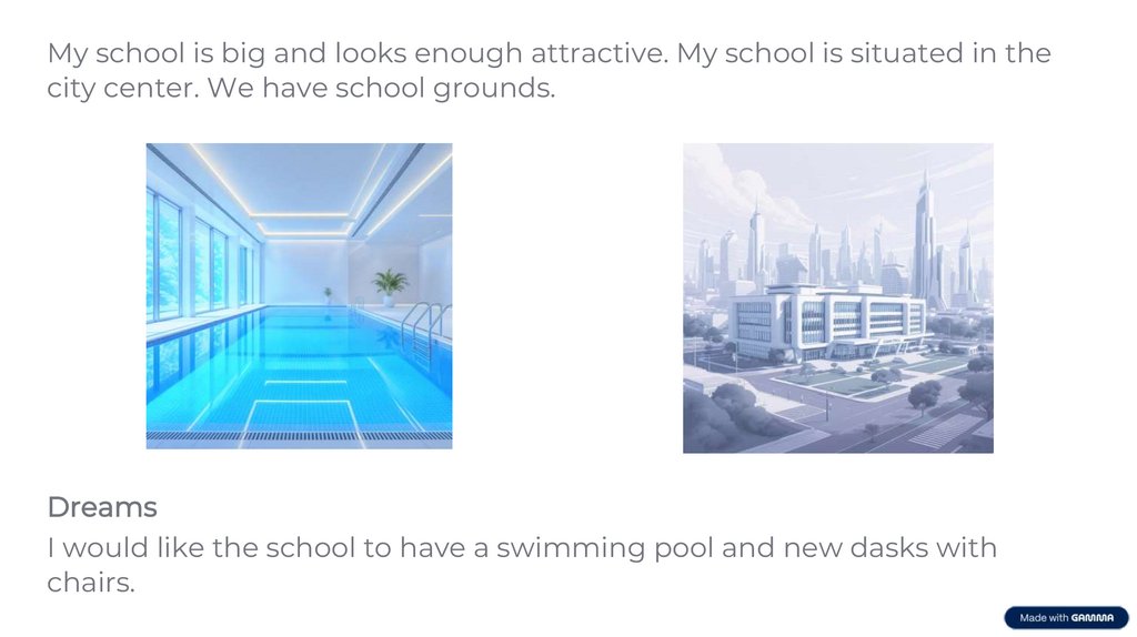 My school is big and looks enough attractive. My school is situated in thecity center. We have school grounds.