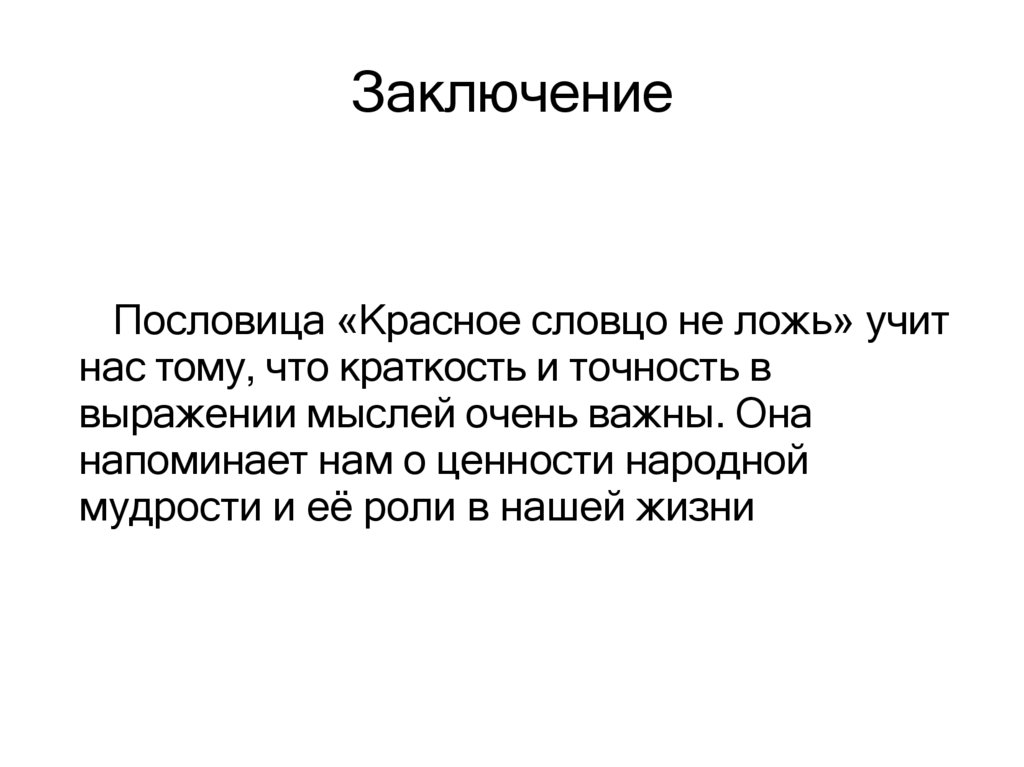 ЗаключениеПословица «Красное словцо не ложь» учит
