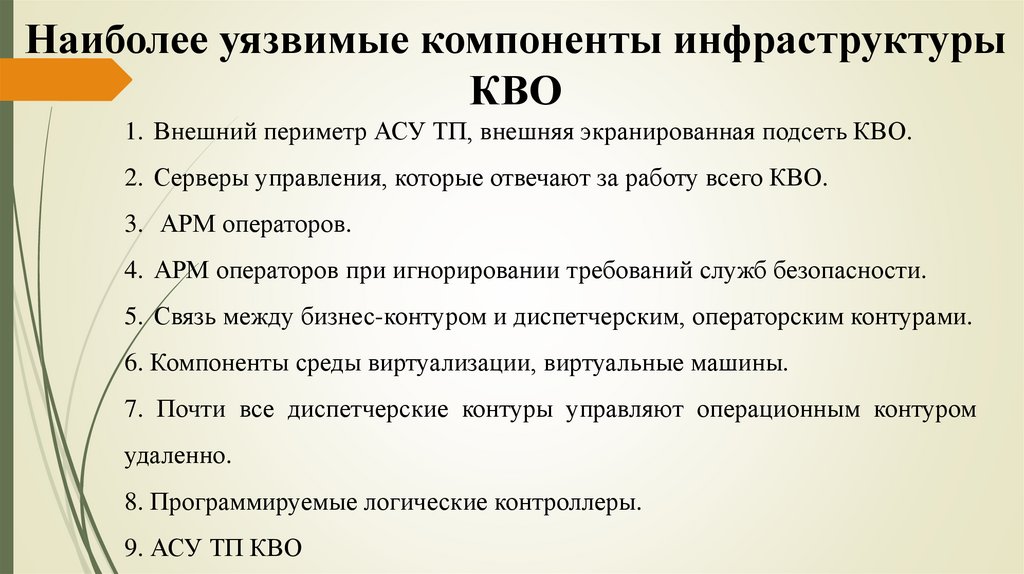 Наиболее уязвимые компоненты инфраструктурыКВО