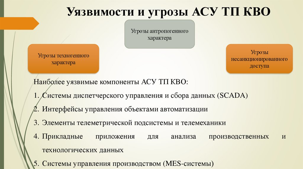 Уязвимости и угрозы АСУ ТП КВОУгрозы антропогенного