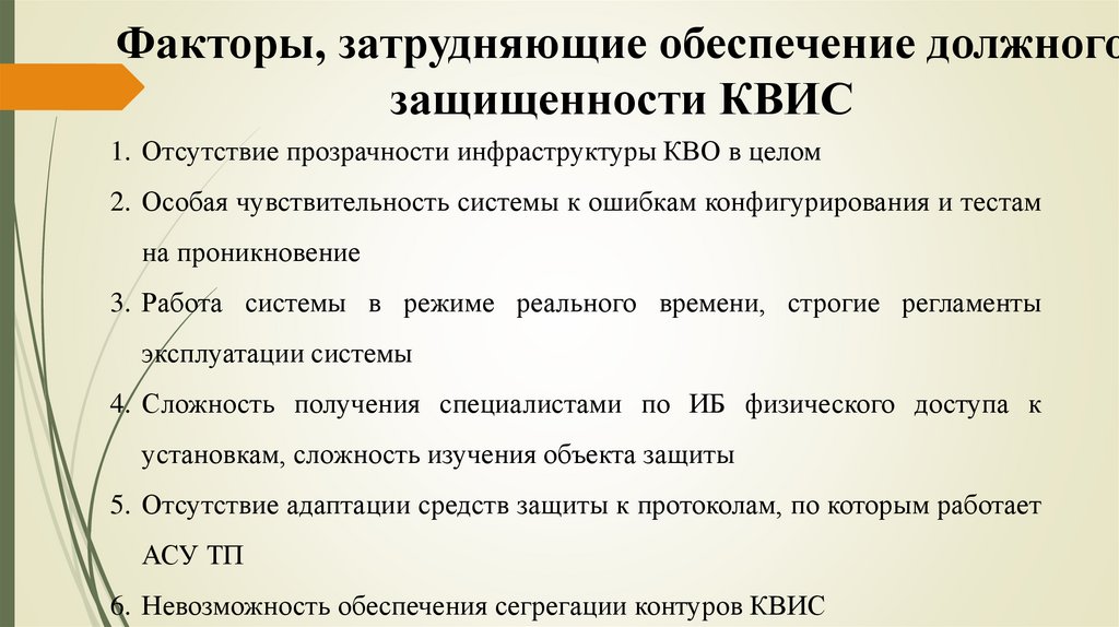 Факторы, затрудняющие обеспечение должногозащищенности КВИС